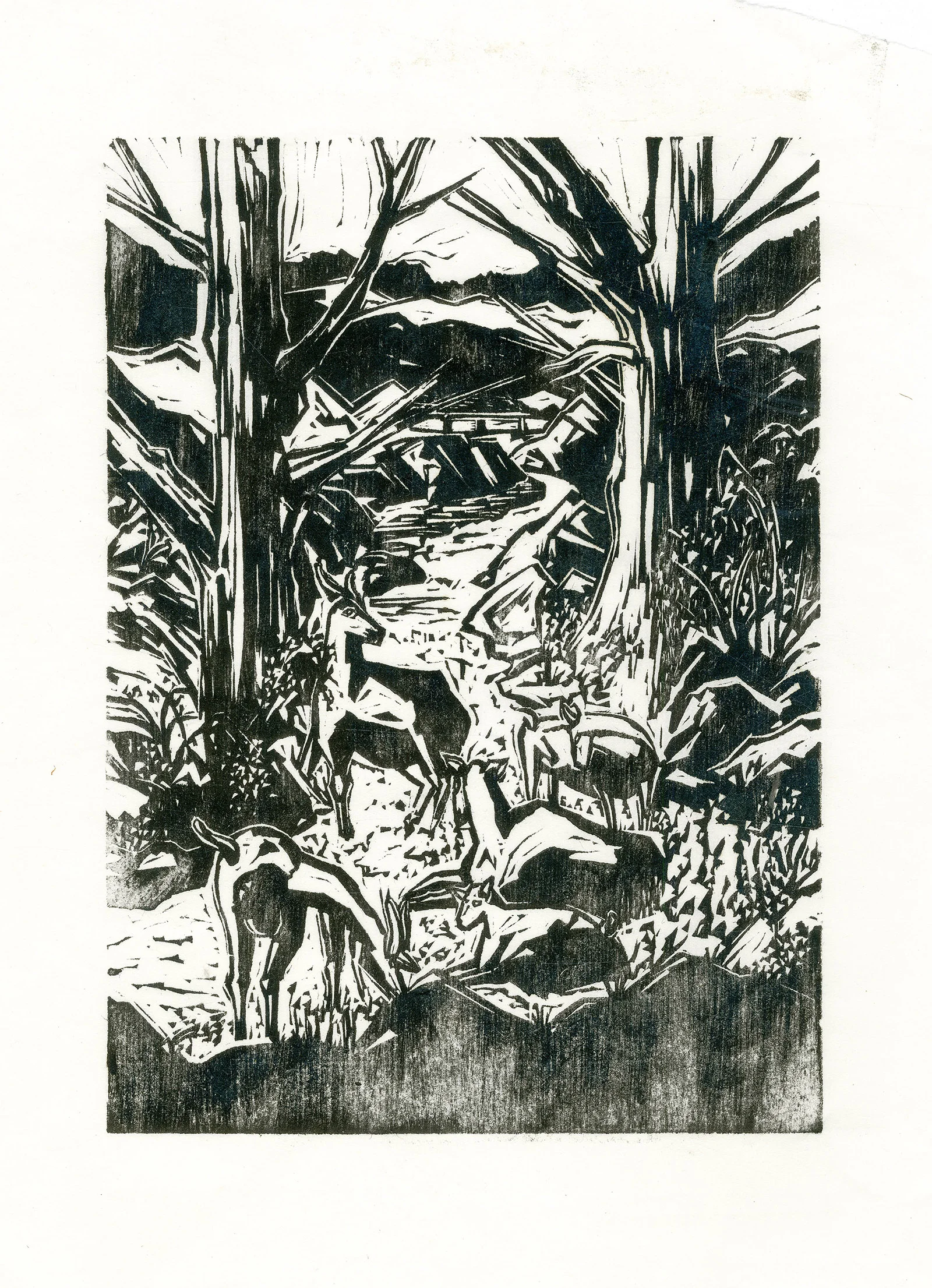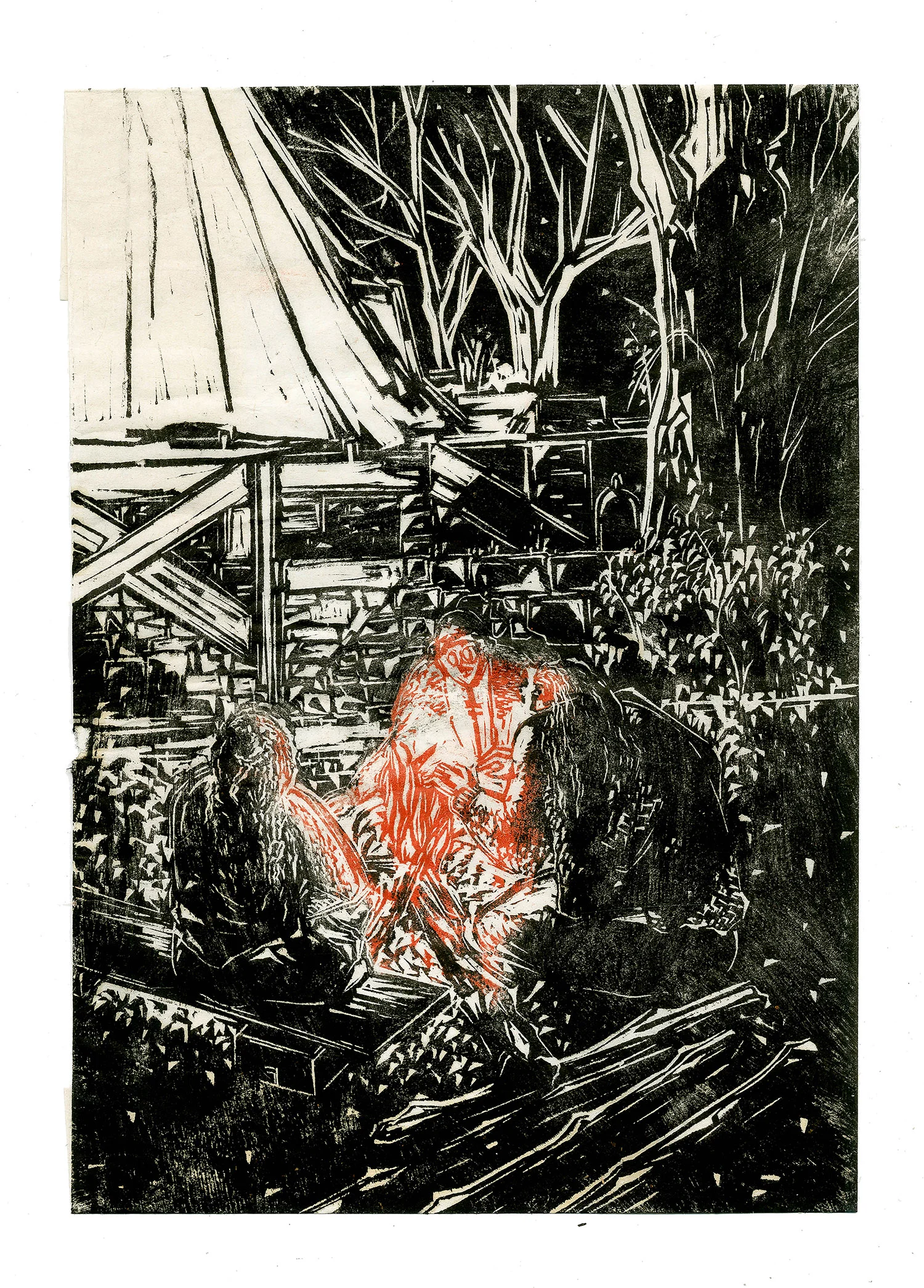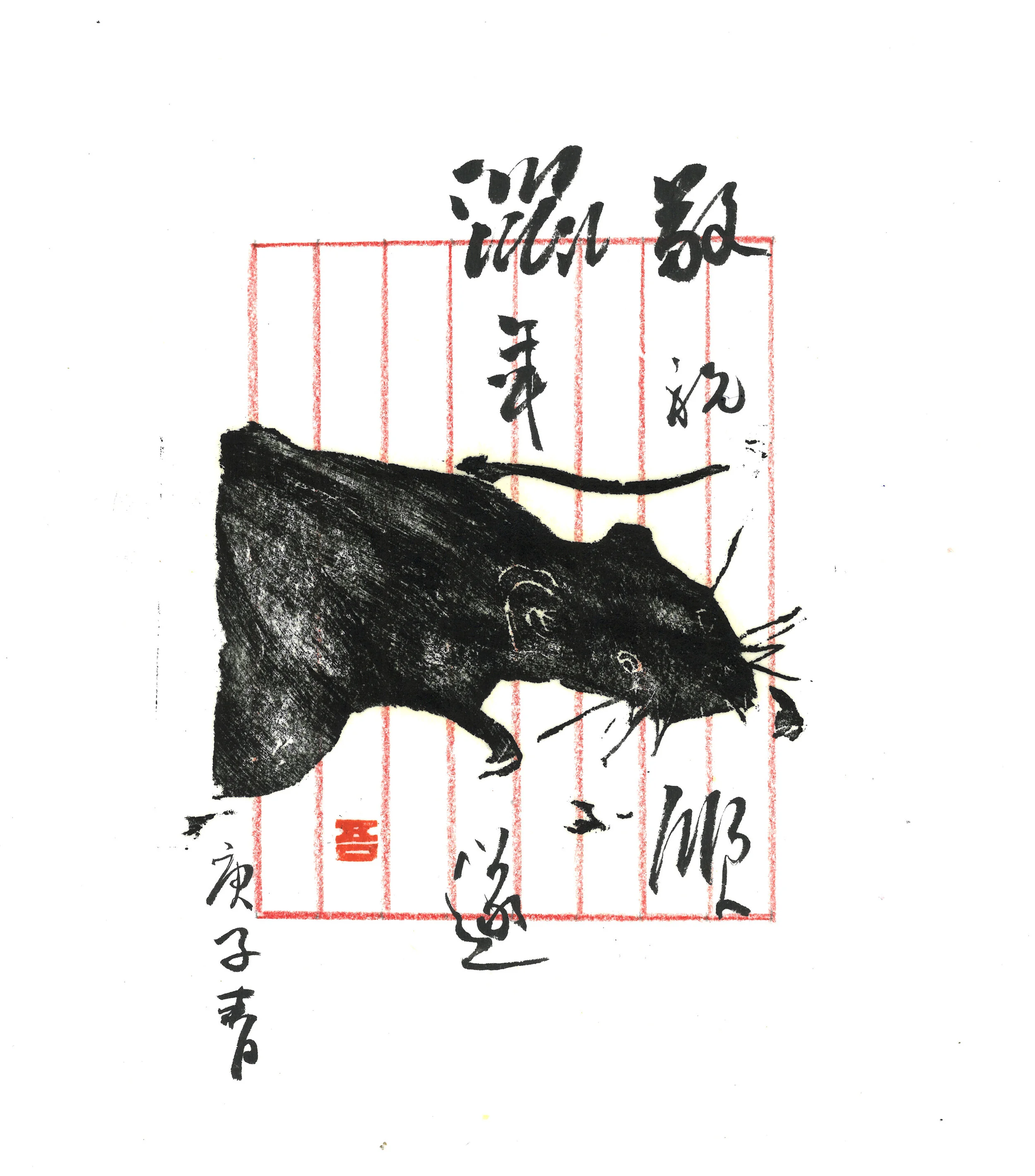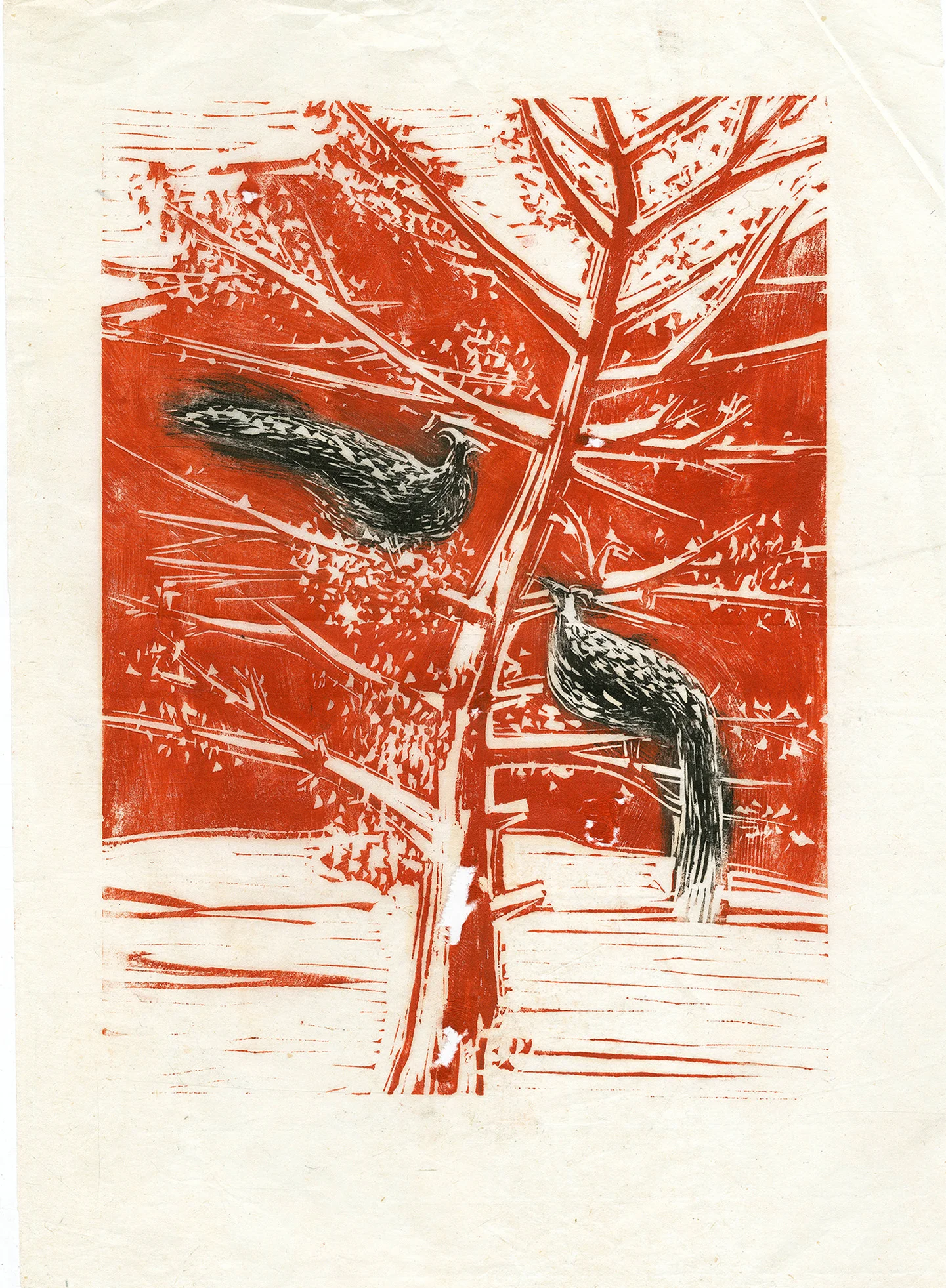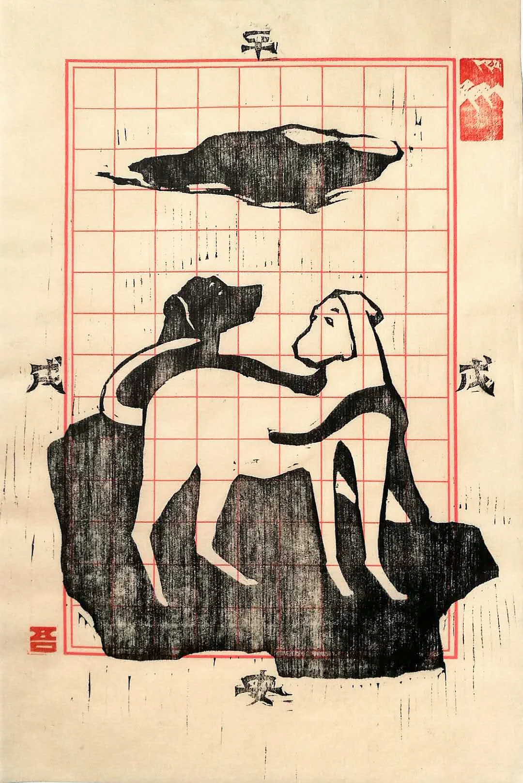 Linocut printed with Xi-ling seal paste and linoprint color on paper