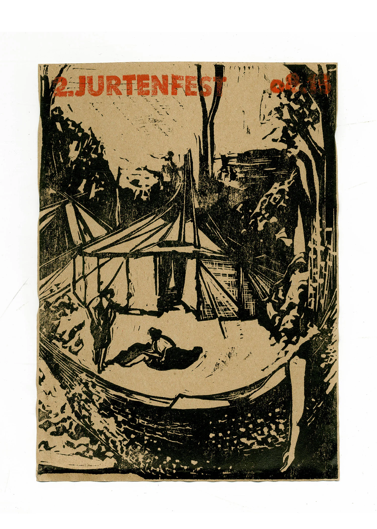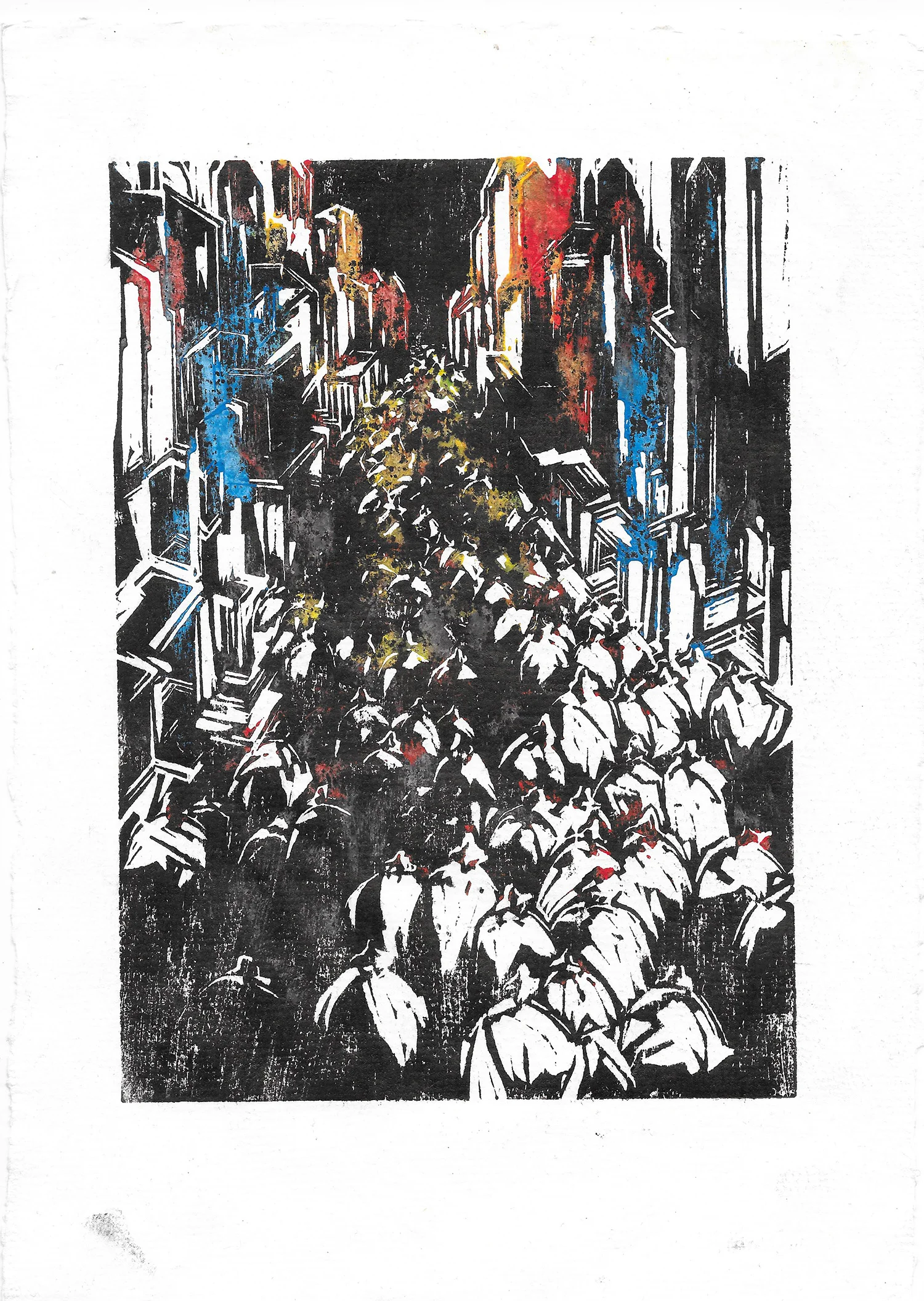 Linocut printed with Xi-ling seal paste and linoprint color on paper