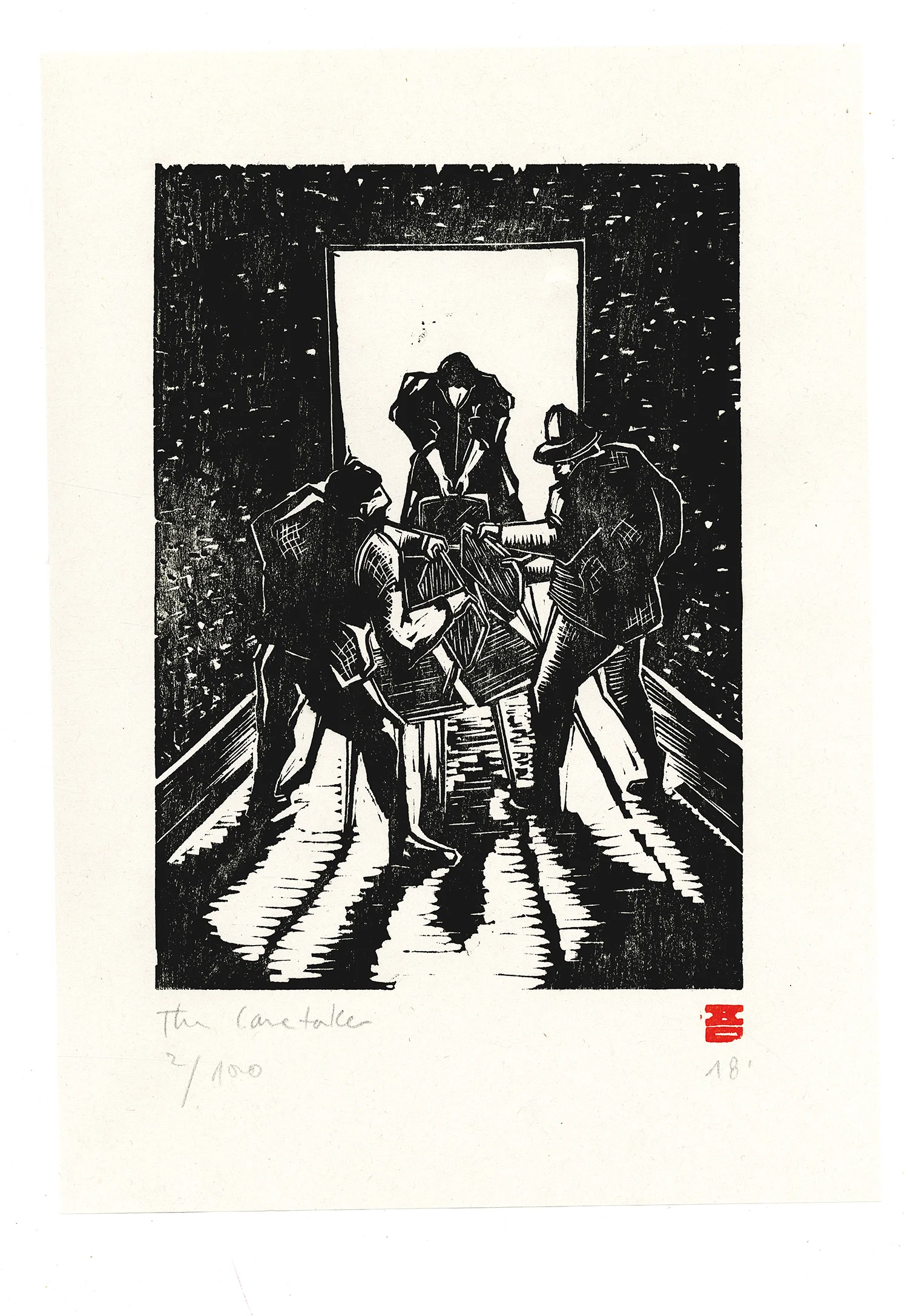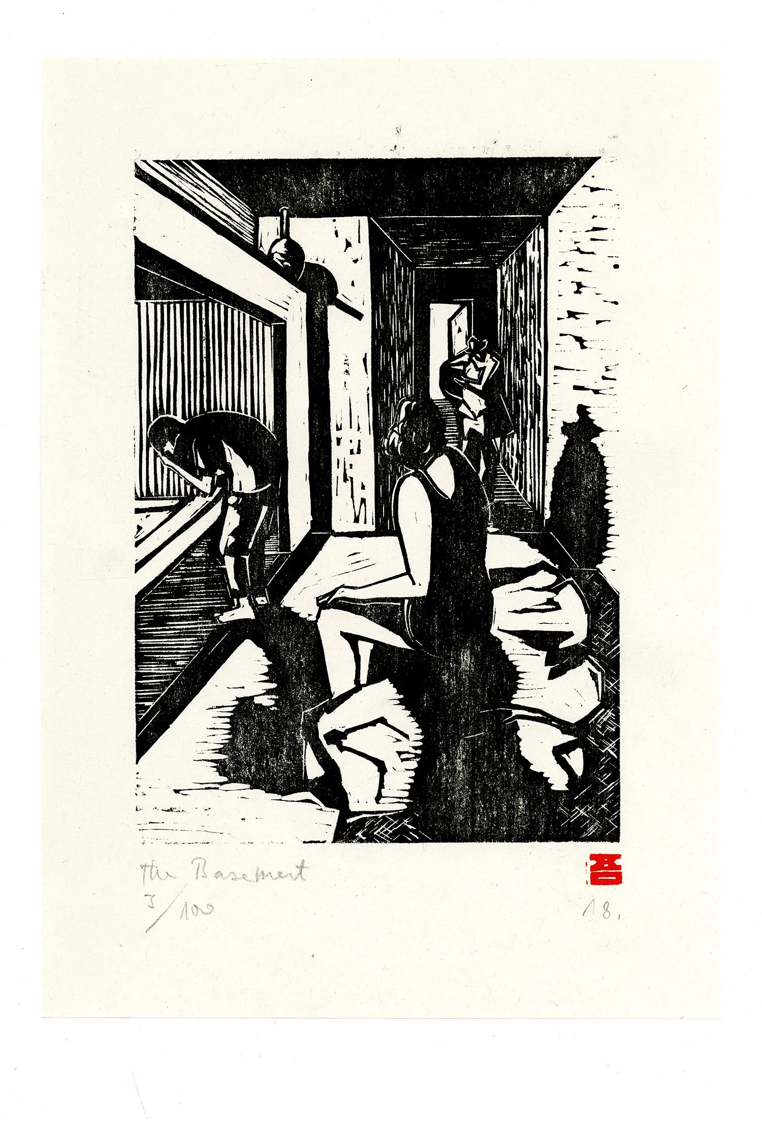 Linocut printed with chinese seal paste on paper